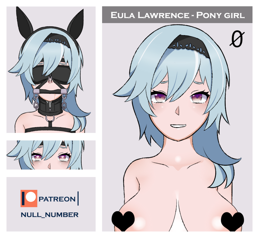 This is a pack with 5 variants of images about Eula Lawrence in Bondage of Pony girl